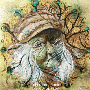 Version 2, corrigée pour sa propriétaire qui souhaitait faire évoluer la 1 ère version ou les branchages, et la femme cerf étaient noirs... Son souhait, après certains soins énergétiques et vibratoires, était de la transformer en OR et d'y ajouter des feuillages printaniers, correspondant mieux à sa nouvelle vibration. Chose faite...